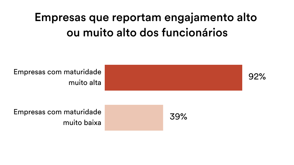 A relação entre o nível de maturidade dos programas de idiomas e os principais indicadores de negócio, incluindo rentabilidade, crescimento, inovação e engajamento dos colaboradores.